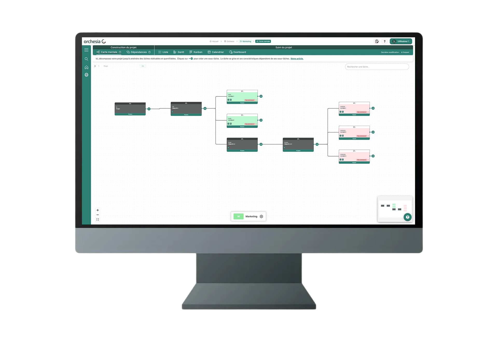 Orchesia propose une approche visuelle du WBS qui facilite la compréhension et la co-construction avec les équipes métiers. La structure du projet devient lisible par tous, ce qui permet d'impliquer les bons acteurs dès le cadrage et de capter la réalité opérationnelle.